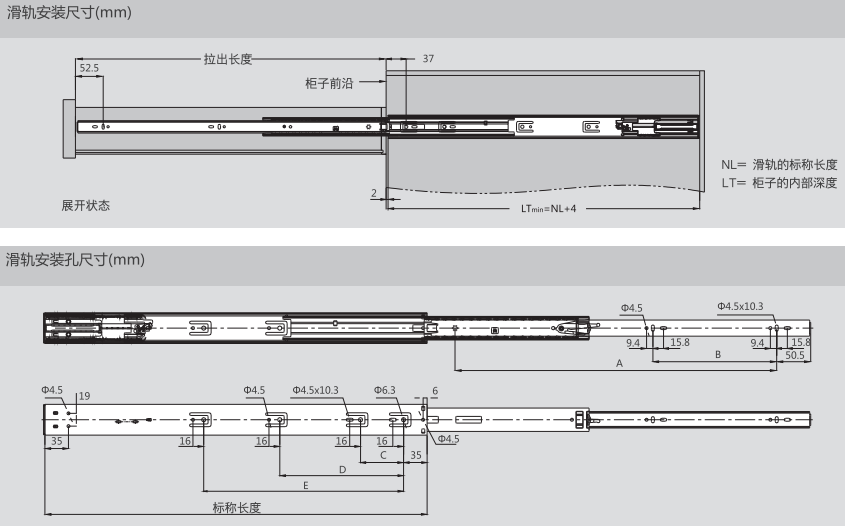 45MM系列公制阻尼弧形全拉出三节走珠滑轨